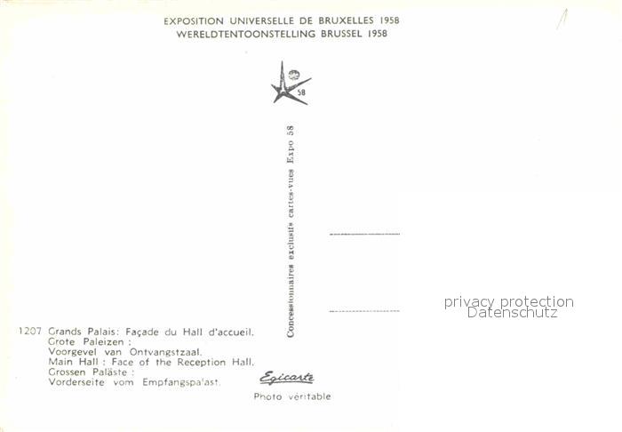 Exposition Universelle Bruxelles 1958 Grands Palais Facade du Hall d accueil postalisch nicht gelaufen Erhaltung siehe scans [PaolaD17]