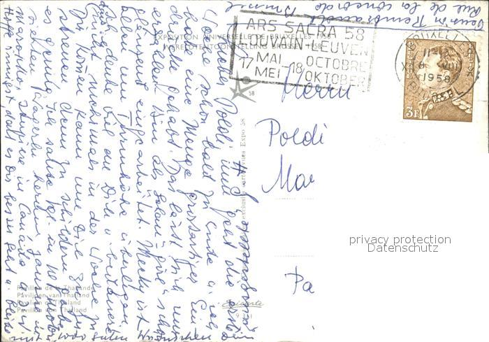 alte Postkarte Exposition Universelle Bruxelles 1958 Pavillon de la Thailande postalisch gelaufen Erhaltung siehe scans