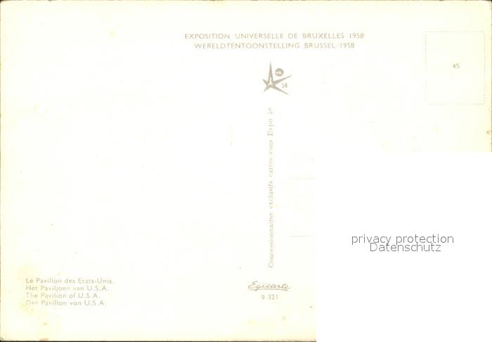 Exposition Universelle Bruxelles 1958 Pavillon USA postalisch nicht gelaufen Erhaltung siehe scans
