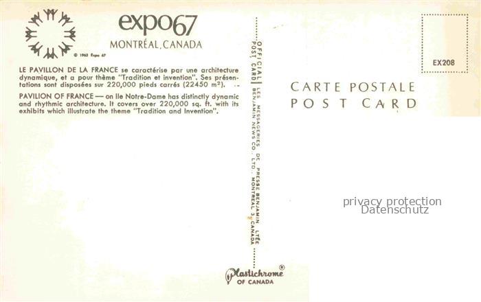74117000 Exposition Universelle Internationale Montreal 1967 Le Pavillon de la France Canada postalisch nicht gelaufen Erhaltung siehe scans [SanaeD93] KatCode: 22100000000100