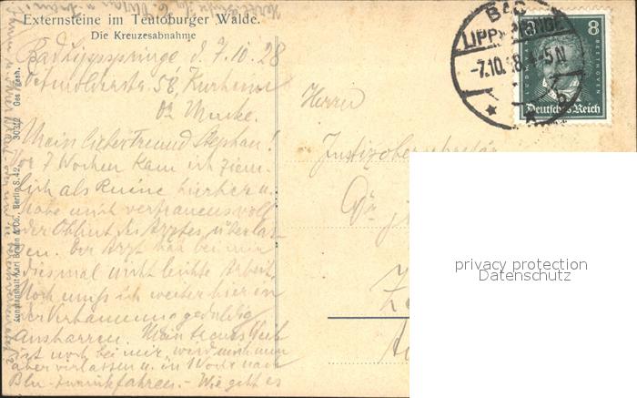 72922411 alte Postkarte Externsteine im Teutoburger Wald Kreuzesabnahme Relief postalisch gelaufen Erhaltung siehe scans [FriedD46] KatCode: 11110005766020