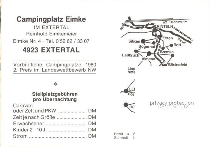 72513872 Extertal Campingplatz Eimke Spielplatz Sanitaerraum Tischtennis postalisch nicht gelaufen Werbekarte (keine Postkarte) Erhaltung siehe scans KatCode: 11110005766028