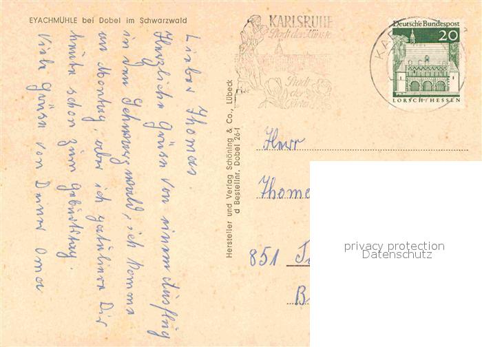 72790488 alte Postkarte Eyachmuehle bei Dobel postalisch gelaufen Erhaltung siehe scans [LiesaD40] KatCode: 11110008235018