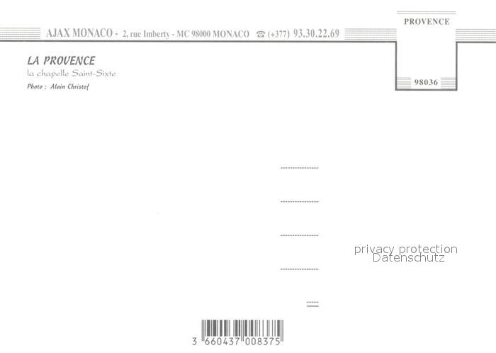 13072126 Eygalieres Chapelle Saint-Sixte postalisch nicht gelaufen Erhaltung siehe scans [NatalD47] KatCode: 11170013213034