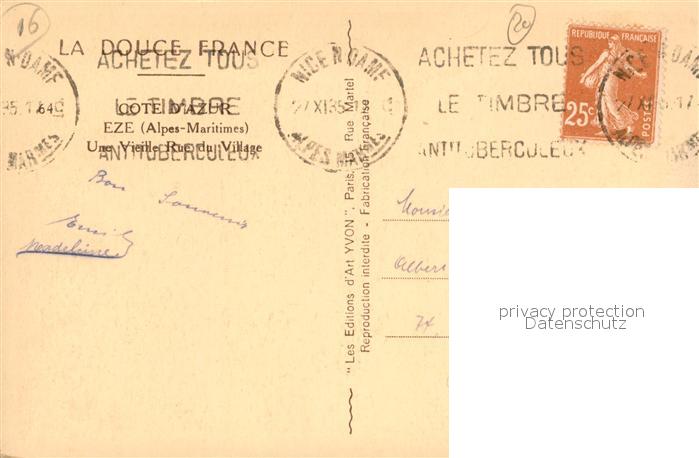 13492978 carte postale Eze 06 Une vieille rue du village postalisch gelaufen Erhaltung siehe scans [FriedD77] KatCode: 11170006206059