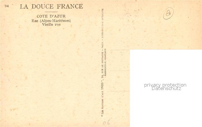 13493021 Eze 06 Une vieille rue Peinture Kuenstlerkarte postalisch nicht gelaufen Erhaltung siehe scans [FriedD77] KatCode: 11170006206059