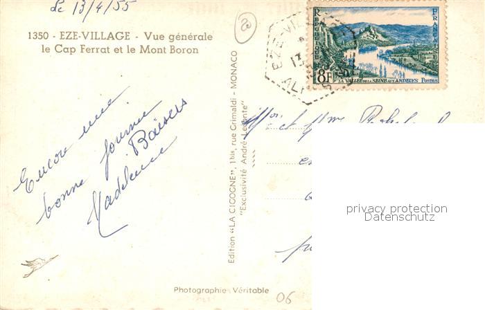 13493022 carte postale Eze 06 Vue Generale Cap Ferrat et Mont Boron Cote d Azur postalisch gelaufen Erhaltung siehe scans [FriedD77] KatCode: 11170006206059