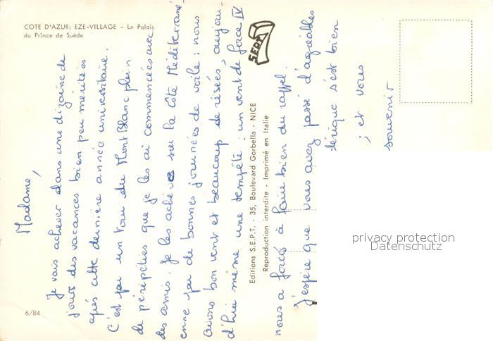 13847329 Eze-sur-Mer 06 Palais du Prince de Suède KatCode 11170006206059