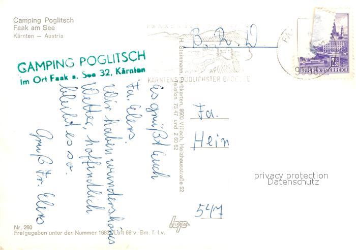 12936960 alte Postkarte Faak am See Finkenstein Camping Poglitsch postalisch gelaufen Erhaltung siehe scans [NatalD47] KatCode: 11390211020711