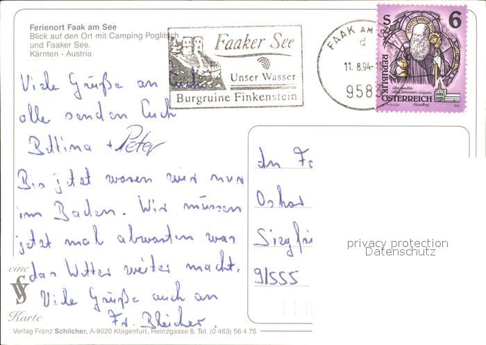 71871978 alte Postkarte Faak am See Finkenstein Camping Poglitsch Fliegeraufnahme postalisch gelaufen Erhaltung siehe scans KatCode: 11390211020711