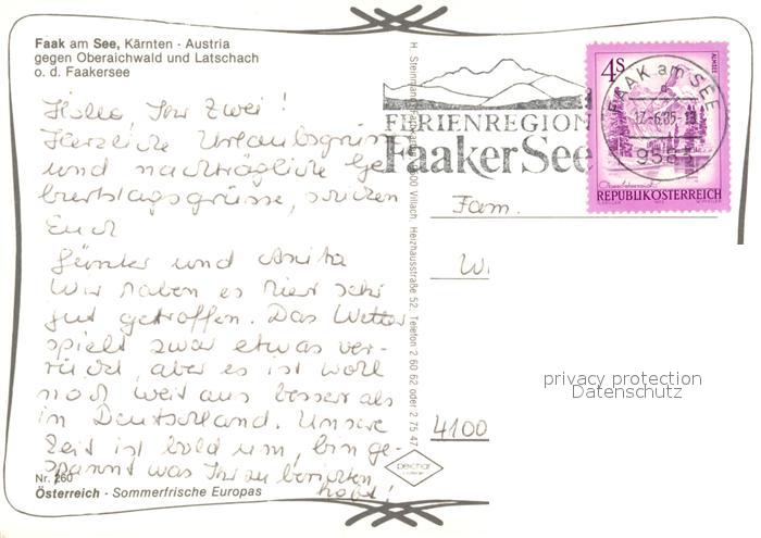 73167439 alte Postkarte Faak am See Finkenstein Fliegeraufnahme Oberaichwald Latschach Faakersee postalisch gelaufen Erhaltung siehe scans [LiesaD40] KatCode: 11390211020711