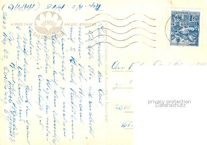 73231726 alte Postkarte Faak am See Finkenstein Fliegeraufnahme Seehotel Schwenner postalisch gelaufen Erhaltung siehe scans [LiesaD40] KatCode: 11390211020711