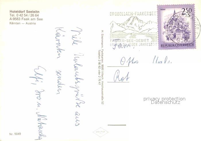 72667613 alte Postkarte Faak am See Finkenstein Hotel Seeleitn postalisch gelaufen Erhaltung siehe scans [AndreD76] KatCode: 11390211020711