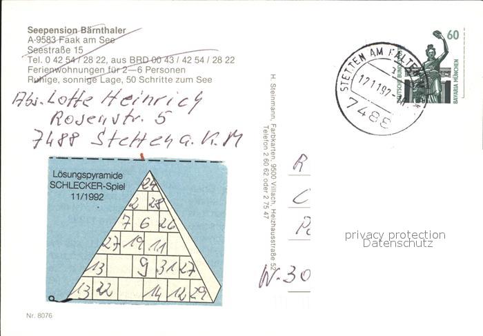 72436374 alte Postkarte Faak am See Finkenstein Seepension Baernthaler postalisch gelaufen Erhaltung siehe scans KatCode: 11390211020711