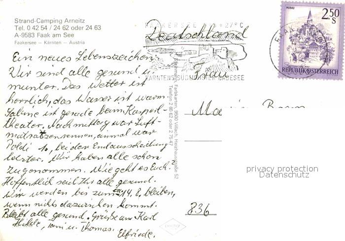 72694330 alte Postkarte Faak am See Finkenstein Strand Camping Arneitz postalisch gelaufen Erhaltung siehe scans [KathaD79] KatCode: 11390211020711