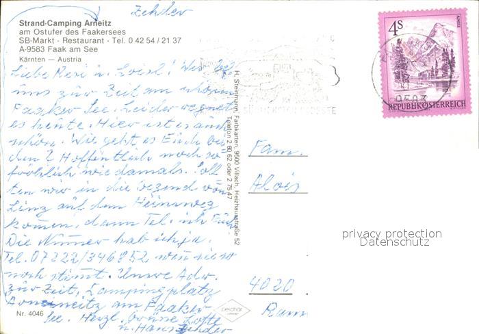 72001848 alte Postkarte Faak am See Finkenstein Strand Camping Arneitz Ostufer postalisch gelaufen Erhaltung siehe scans KatCode: 11390211020711