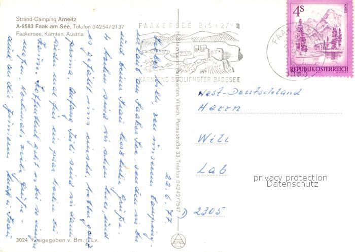 73033369 alte Postkarte Faak am See Finkenstein Strand-Camping Arneitz postalisch gelaufen Erhaltung siehe scans [PaolaD17] KatCode: 11390211020711