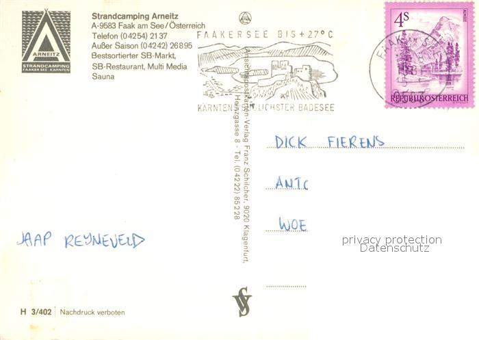 73033367 alte Postkarte Faak am See Finkenstein Strandcamping Arneitz postalisch gelaufen Erhaltung siehe scans [PaolaD17] KatCode: 11390211020711