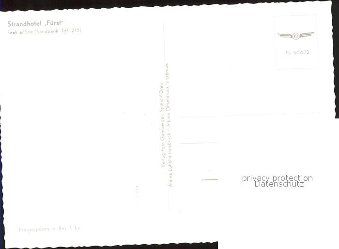 71872281 Faak am See Finkenstein Strandhotel Fuerst Fliegeraufnahme postalisch nicht gelaufen Erhaltung siehe scans KatCode: 11390211020711