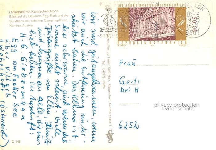 73340023 alte Postkarte Faakersee Alpenpanorama Fliegeraufnahme postalisch gelaufen Erhaltung siehe scans [FriedD77] KatCode: 11390211020201