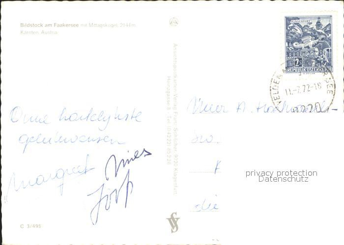 72094921 alte Postkarte Faakersee Bildstock postalisch gelaufen Erhaltung siehe scans KatCode: 11390211020201