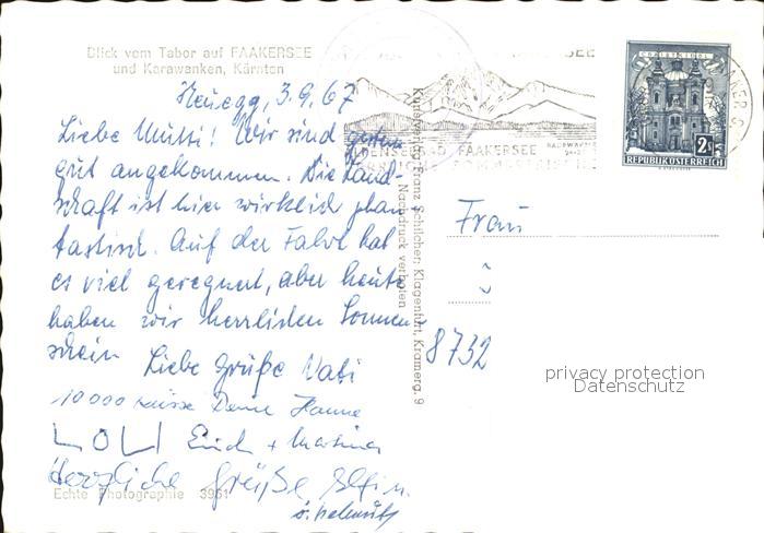 72433451 alte Postkarte Faakersee Blick vom Taber auf Kerawanken postalisch gelaufen Erhaltung siehe scans KatCode: 11390211020201