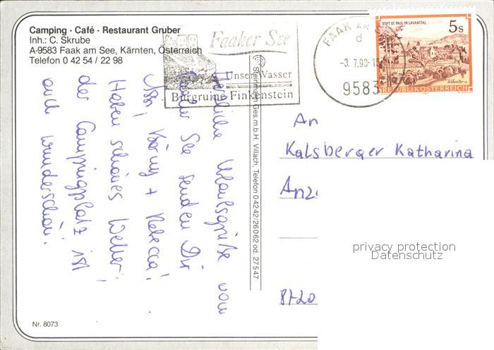 72037980 alte Postkarte Faakersee Camping Gruber Bildstock Strand und Segelpartie Restauration postalisch gelaufen Erhaltung siehe scans KatCode: 11390211020201