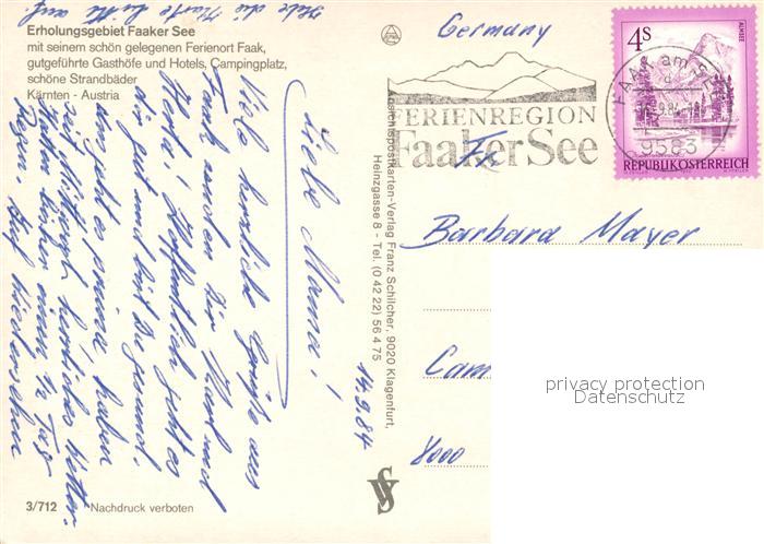 73185198 alte Postkarte Faakersee Fliegeraufnahme postalisch gelaufen Erhaltung siehe scans [LiesaD40] KatCode: 11390211020201