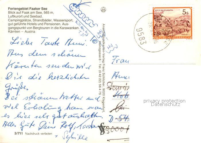 73161397 alte Postkarte Faakersee Fliegeraufnahme postalisch gelaufen Erhaltung siehe scans [KathaD81] KatCode: 11390211020201