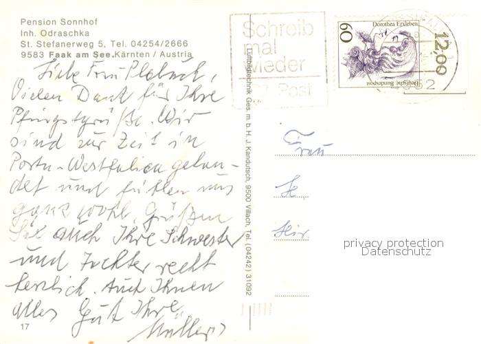 13171022 alte Postkarte Faakersee Fliegeraufnahme Sonnhof postalisch gelaufen Erhaltung siehe scans [KathaD81] KatCode: 11390211020201