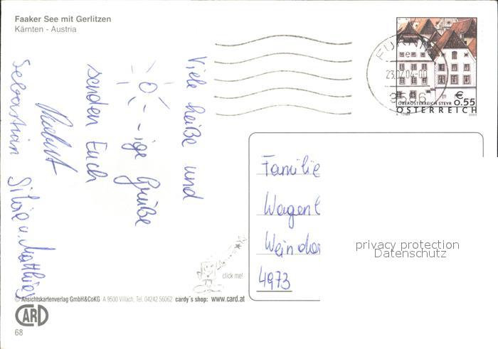 72288261 alte Postkarte Faakersee Gerlitzen postalisch gelaufen Erhaltung siehe scans KatCode: 11390211020201