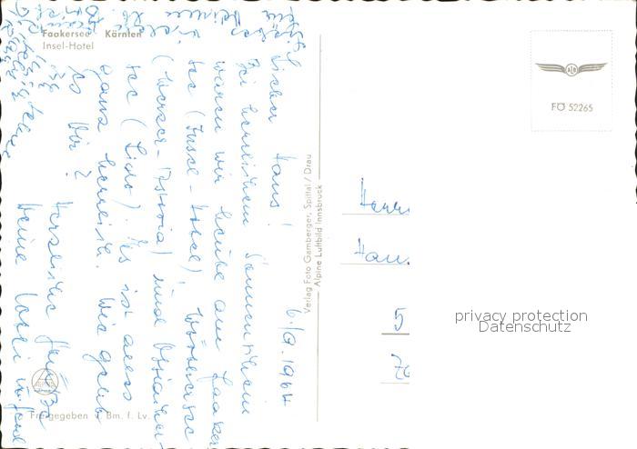 71872137 Faakersee Insel-Hotel Fliegeraufnahme postalisch nicht gelaufen KatCode: 11390211020201