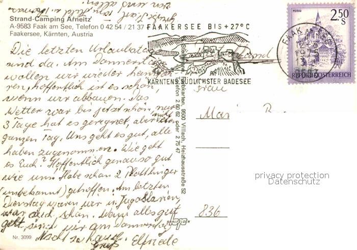 72694333 alte Postkarte Faakersee Strand Camping Arneitz postalisch gelaufen Erhaltung siehe scans [KathaD79] KatCode: 11390211020201
