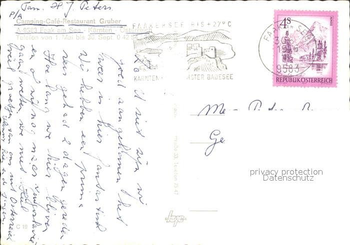 72037988 alte Postkarte Faakersee Strandcamping Gruber Strandpartie Restauration postalisch gelaufen Erhaltung siehe scans KatCode: 11390211020201