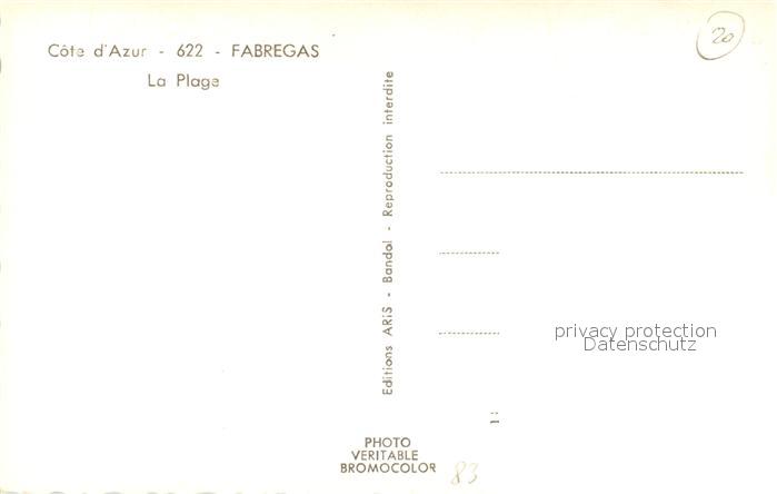 13484987 Fabregas La Plage Cote d Azur postalisch nicht gelaufen Erhaltung siehe scans [FriedD77] KatCode: 11170083283126