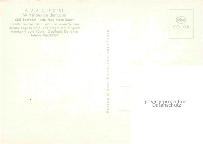 74050899 Fachbach ADAC Hotel Wirtshaus an der Lahn Gastraeume postalisch nicht gelaufen Erhaltung siehe scans [WerneD78] KatCode: 11110007141041