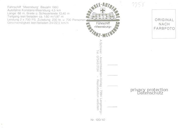 74041208 Faehre Ferry Bac Traghetto– Bodensee Konstanz Meersburg postalisch nicht gelaufen Erhaltung siehe scans [SanaeD93] KatCode: 22480000000200