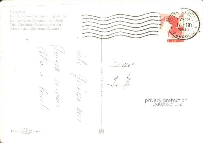 alte Postkarte Faehre Ferry Bac Traghetto– Cristoforo Colombo Genova postalisch gelaufen