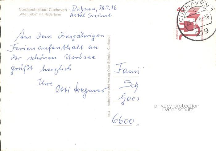 alte Postkarte Faehre Ferry Bac Traghetto– Cuxhaven Alte Liebe Radarturm postalisch gelaufen Erhaltung siehe scans