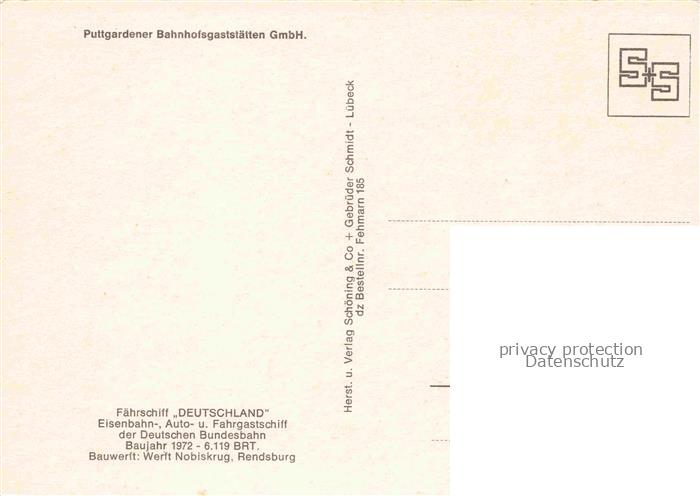 74031200 Faehre Ferry Bac Traghetto– Deutschland Puttgardener Bahnhofsgastaetten GmbH postalisch nicht gelaufen Erhaltung siehe scans [IrynaD87] KatCode: 22480000000200