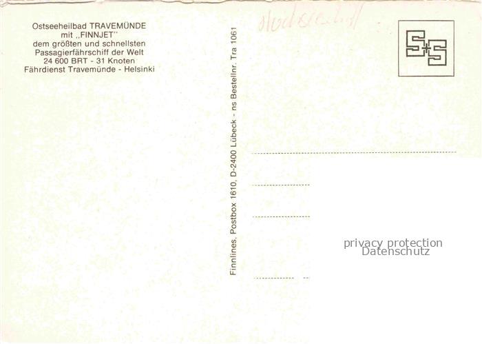 74051976 Faehre Ferry Bac Traghetto– Finnjet 24600BRT Travemuende Helsinki postalisch nicht gelaufen Erhaltung siehe scans [IrynaD87] KatCode: 22480000000200