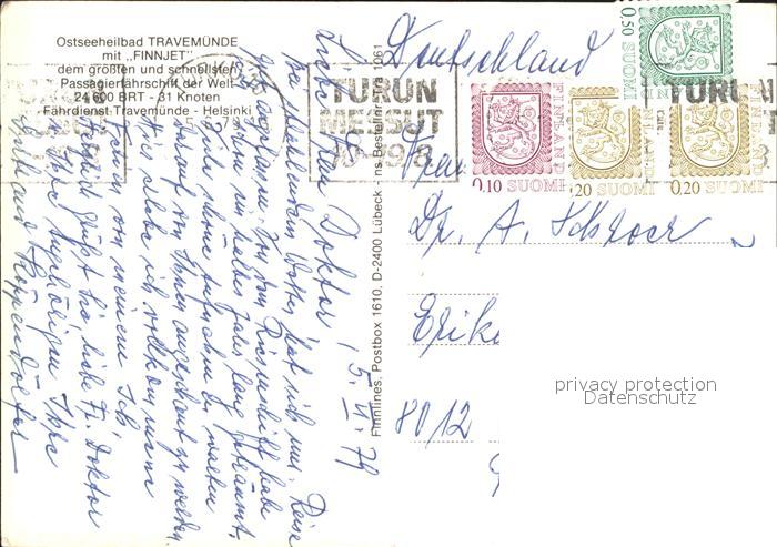 alte Postkarte Faehre Ferry Bac Traghetto– Finnjet Travemuende postalisch gelaufen Erhaltung siehe scans