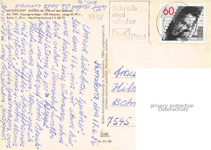 74041210 alte Postkarte Faehre Ferry Bac Traghetto– Fritz Arnold Bodensee Meersburg Konstanz postalisch gelaufen Erhaltung siehe scans [SanaeD93] KatCode: 22480000000200