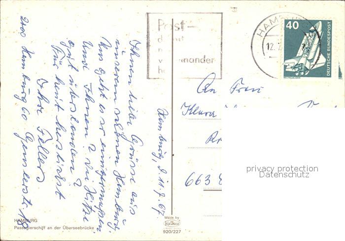 alte Postkarte Faehre Ferry Bac Traghetto– Hamburg ueberseebruecke postalisch gelaufen Erhaltung siehe scans
