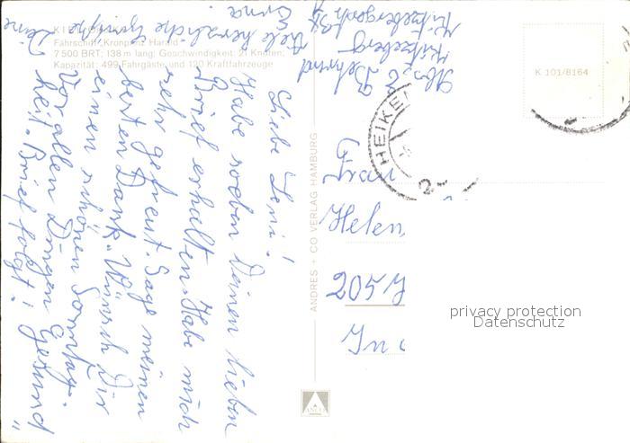 alte Postkarte Faehre Ferry Bac Traghetto– Kronprinz Harald Kiel Oslo-Kai postalisch gelaufen Erhaltung siehe scans