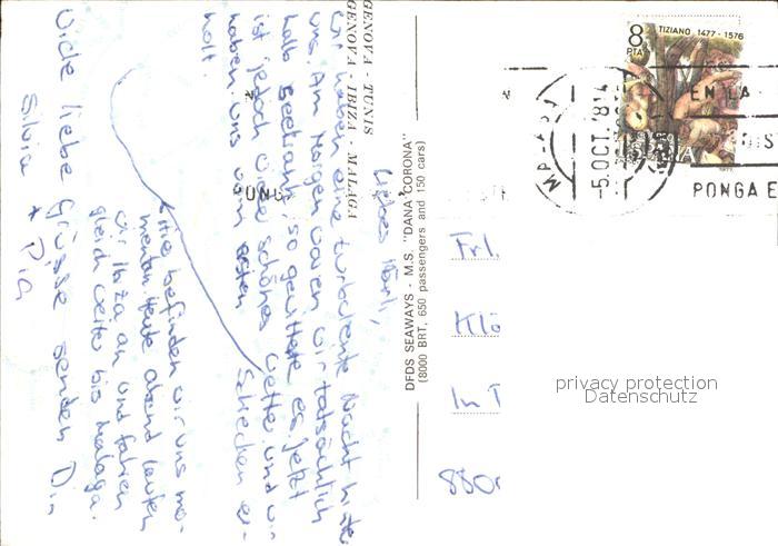 alte Postkarte Faehre Ferry Bac Traghetto– M.S. Dana Corona postalisch gelaufen Erhaltung siehe scans