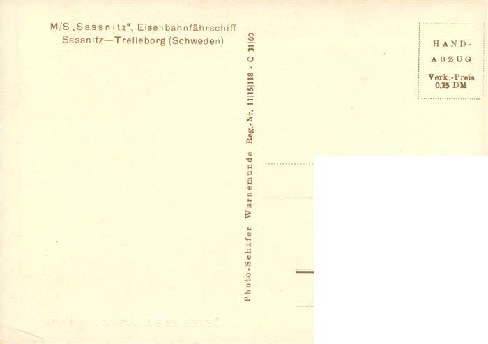 73892600 Faehre Ferry Bac Traghetto– M/S Sassnitz postalisch nicht gelaufen Erhaltung siehe scans [IrynaD87] KatCode: 22480000000200
