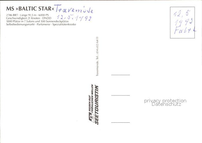 Faehre Ferry Bac Traghetto– MS Baltic Star postalisch nicht gelaufen Erhaltung siehe scans