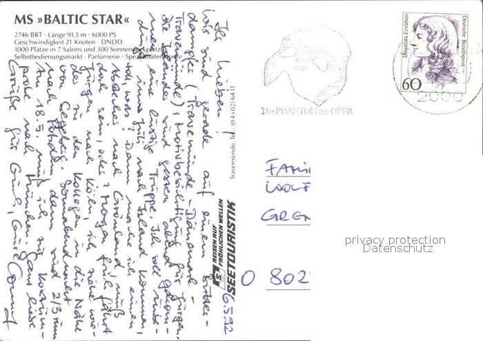 alte Postkarte Faehre Ferry Bac Traghetto– MS Baltic Star postalisch gelaufen Erhaltung siehe scans