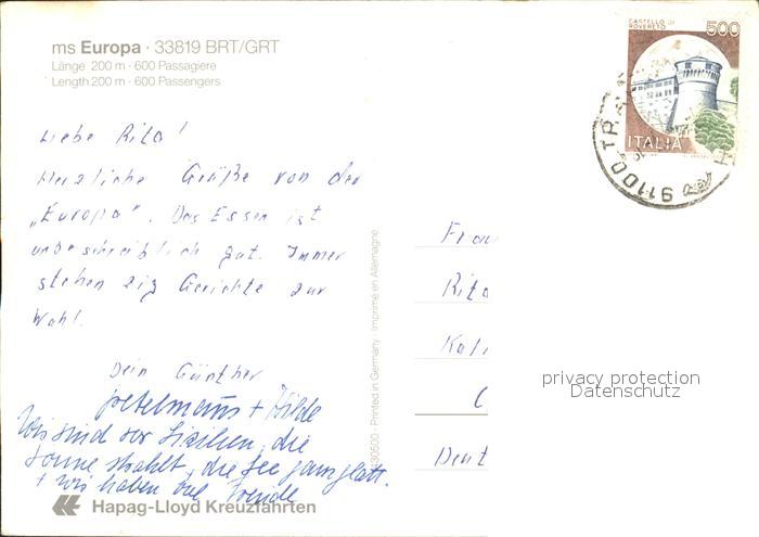 alte Postkarte Faehre Ferry Bac Traghetto– MS Europa postalisch gelaufen